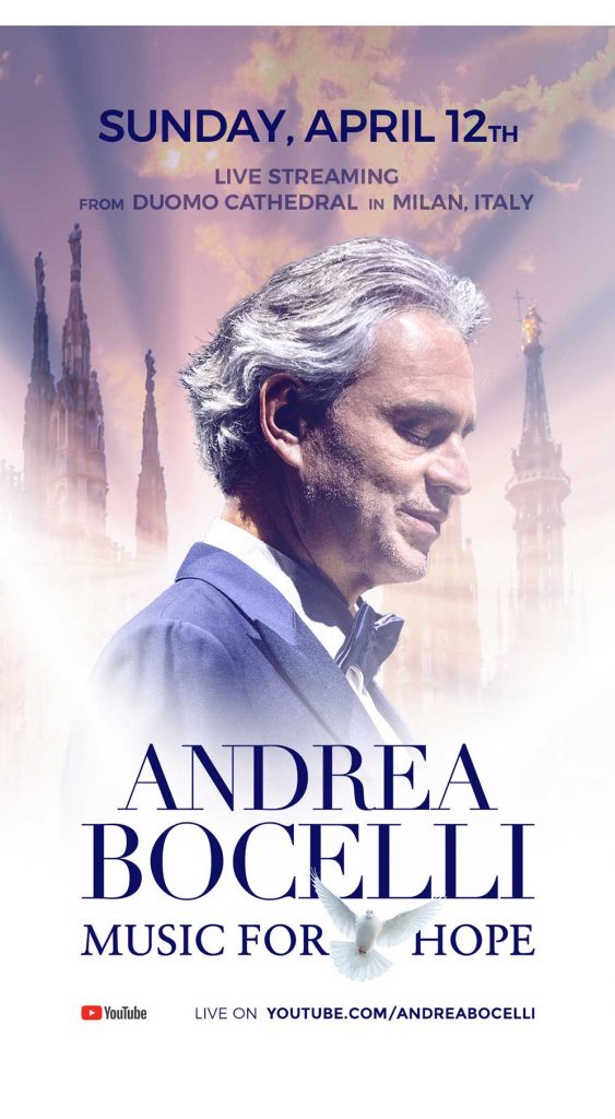 Andrea Bocelli toca el corazón del mundo mientras 3,4 millones ven su concierto Music For Hope en vivo desde el desierto Duomo di Milano el domingo de Pascua.